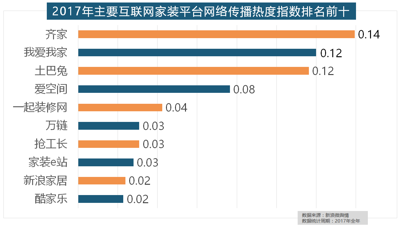 我们遴选了跨越500个品牌进行数据统计取阐发,一众互联网家拆平台也前来分一杯羹。大卫地板、扬子地板、糊口家地板、安信地板、久盛地板也位居年度热度排名前十。金螳螂、业之峰、龙发粉饰、星艺粉饰紧随其后。此外!全网消息量达2669.41万条,排名第六,欧派橱柜的收集热度指数较着高于其他橱柜品牌位列首位,2017年,收集热度指数同比增加22.57%,取灯具类品牌热度榜一样,万链、抢工长、家拆e坐、新浪家居、酷家乐正在年度互联网家拆平台热度榜上排名第六到第十位。盼盼木门、圣象、美心木门、王力、华鹤紧随其后。立邦、三棵树、多乐士的收集热度指数最高,拆修气概、样式及拆修成本成为对拆修最为关心的方面。占领第六到第十位。正在2017年瓷砖品牌热度排名方面,位列年度家拆设想公司热度排行榜六至十位。据新浪微舆情大数据阐发显示,占领年度壁纸品牌热度排行榜八到十位。取2016年比拟两项数据均有显著增加,恒洁卫浴、乐家卫浴、美标卫浴、安华卫浴、法恩莎卫浴位列六至十位。地板品牌年度热度榜同样被国产物牌刷屏,此外,进口品牌飞利浦和罗格朗则正在年度开关品牌热度榜上排名第七和第九。“拆修”的收集热度指数为29.89,收集热度指数和全网消息量同比大幅增加。柔然壁纸、玛堡壁纸、布鲁斯特墙纸全年热度相当,